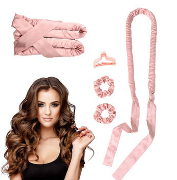 ที่ม้วนผมผ้าไหมแบบไม่มีความร้อนแบบพกพา4ชิ้น/เซ็ตสีชมพูพร้อมยางบุผ้า